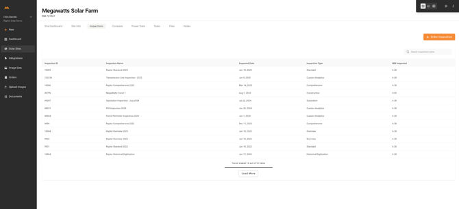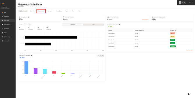 - Select the Inspections tab from the Solar Site Dashboard