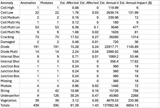 The Remediation Planning PDF is an export file that includes a summary table, a detailed anomaly list, as well as map screenshots. This export will respect any filters that are applied prior to export.
