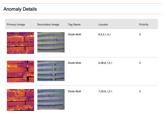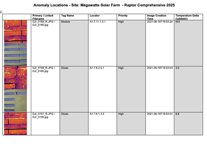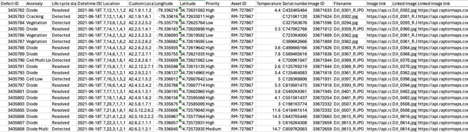 The Data file is a detailed spreadsheet listing of all anomalies, and includes circuit location, latitude and longitude, temperature deltas (where applicable), priority, anomaly status, and a link to imagery downloads.