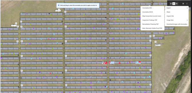 The Warranty Visible Proof PDF is in beta testing, but is an export that is a detailed anomaly list with inspection imagery. This export will respect any filters that are applied prior to export.